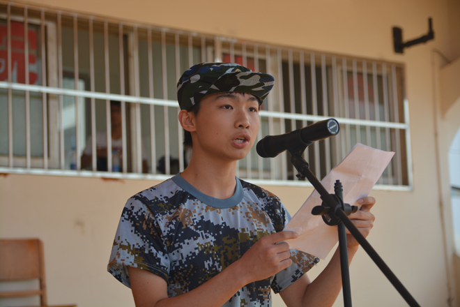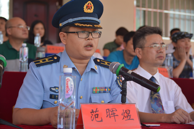 范晖煜中校代表承训部队向各位新同学表示最热烈的祝贺!对学院给予部队官兵各方面的关心和支持表示衷心的感谢!他强调,军训是贯彻国防教育法的具体行动,是推进素质教育、为国家培养造就高素质国防力量的重要举措,更是同学们强体魄、练作风、磨意志、正修养的良好平台,希望同学们倍加珍惜,勤学苦练,培塑起争标兵、夺红旗的闯劲,令则行、禁则止的韧劲,勤思虑、善总结的巧劲。为人生埋下伏笔,为未来奠定基础。