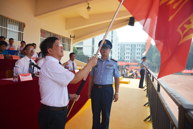 上午9时许,在2016级2900多名新生嘹亮的国歌声中,会议正式拉开帷幕。学院副院长黄智凌宣读2016年学生军训团组成人员名单。