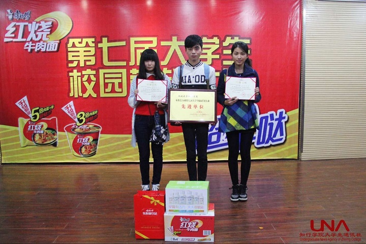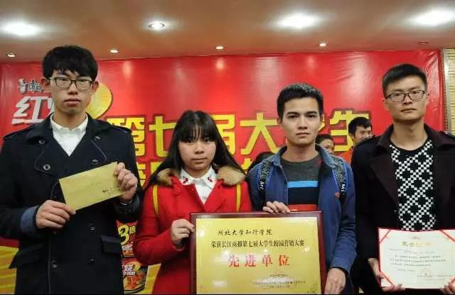 我系工商管理1401B学生黄著、郑锦烨、张莹、林青、陈娜组成以黄超为队长的“悠然特工”队,金融学1502B学生张超、杨紫馨、李慧和金融学1503B学生王慧玲组成以田江英为队长的“长江小六”队。两支队伍认真准备、分工合作、勇于实践,从武汉市三十多所高校、400多支队伍中脱颖而出,分别以校区第一、二名的成绩成功入围第七届大学生校园营销大赛决赛。在院团委组织指导和经管系颜倩、龚峰、石畅老师帮助下,在老师和同学们的大力支持下,最终,我系“悠然特工”队、“长江小六”队分别喜获最佳人气奖第1名、第8名的好成绩,学院荣获“先进单位”奖。