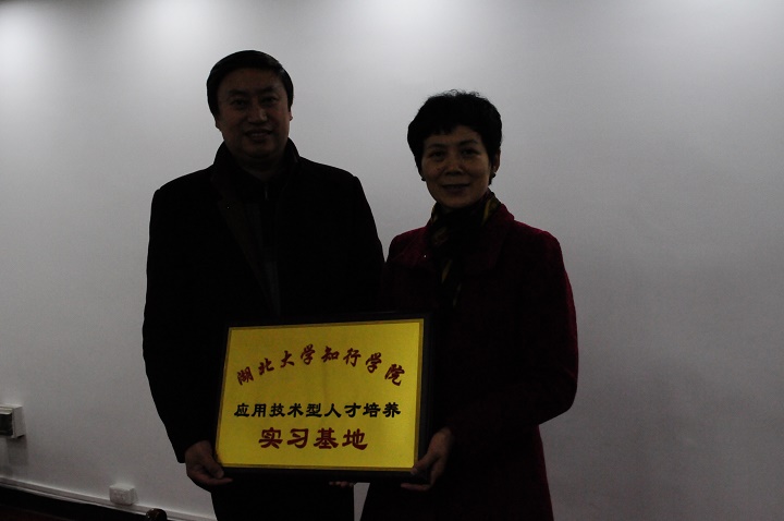 会谈后,刘主任和李董事长一起为“应用技术型人才培养”实习基地挂牌,并合影留念。