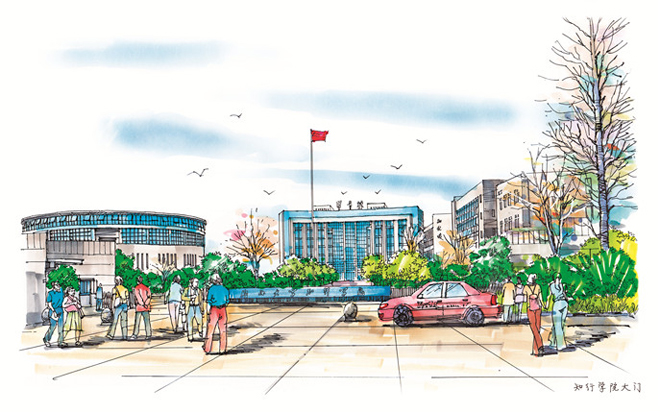 “拍摄的照片都是经过认真选取的。”李小强表示,选建筑物时还专门请教过学院老师,力求从一个面展现一个建筑的整体风貌。“为了保证图片质量,好友在绘画时还专门研究了水彩画色彩的调制,人物的添加等细节,使画面更加美化。”李小强说,手绘水彩图的工程量很大,知行十景的水彩画耗时一个多月才完成。