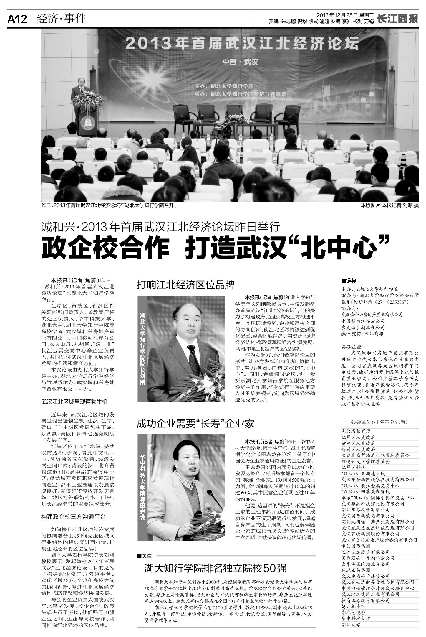 永利集团院长刘刚教授表示,发起举办2013年首届武汉“江北经济论坛”,目的是为了构建政企校三方沟通平台。实现区域经济、企业和高校之间的协同创新,促进江北区域经济结构战略调整和经济协调发展。