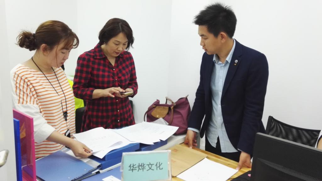 我系郑江南同学创立的武汉华烨文化传播有限公司落户众创空间,获得工位开展经营活动,目前业务布局广泛,企业经营情况良好。两位老师对华烨文化的业务合同及日常账目进行了查看,并给以了指导。