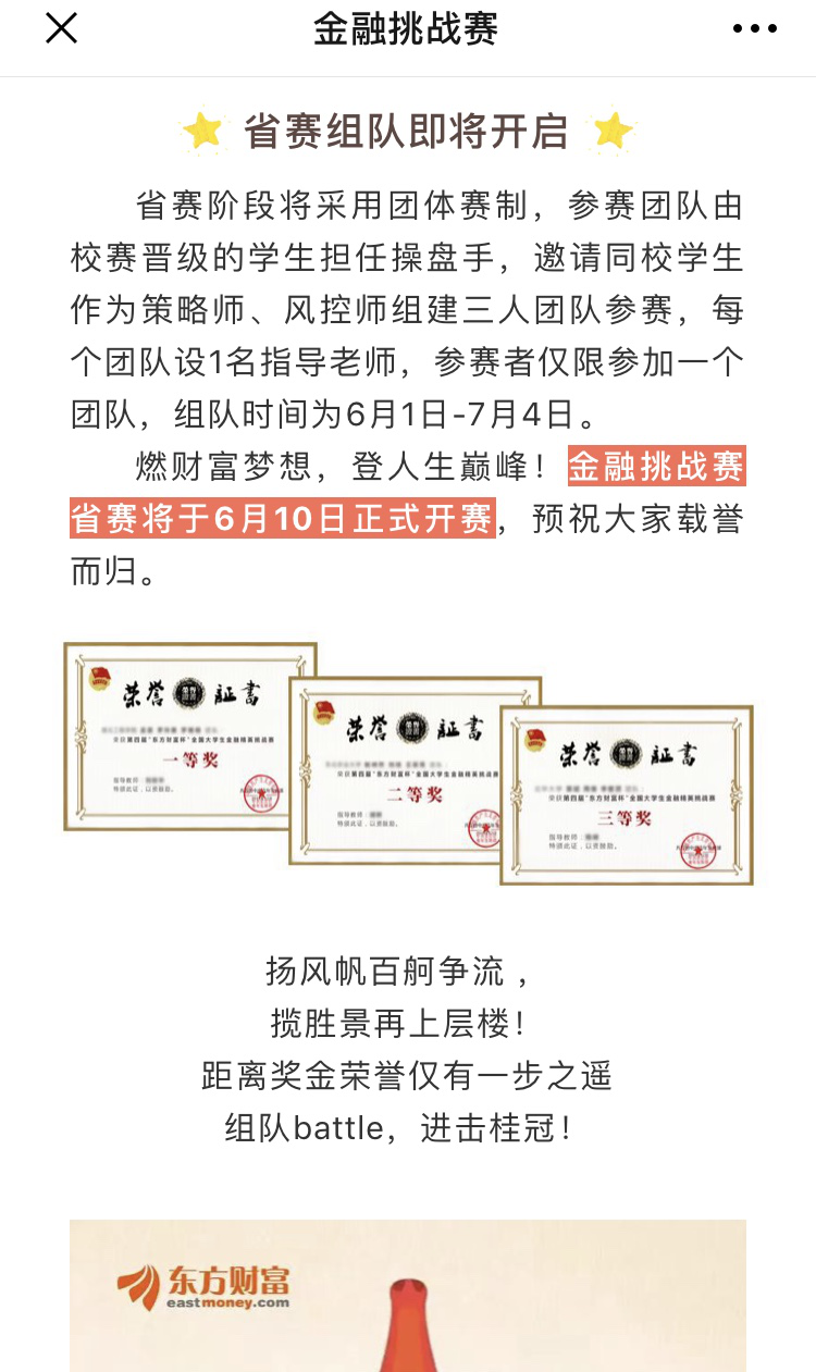 我院64名学生入围第五届东方财富杯金融挑战赛省赛