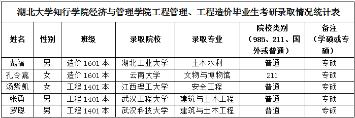 考研喜报—祝贺我院工程管理、工程造价专业研究生入学考试再创佳绩