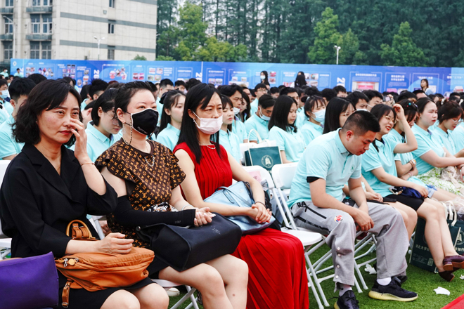 教师代表王晗在发言中深情回顾了与同学们朝夕相处的大学愉快时光,对同学们在互联网时代所展现出来的自信、自主、自爱、自省、自立给予了充分肯定,鼓励同学们选择自己想要的体验,对外追求自己想要的时光,对内满足于所有的遇见,真正做到爱自己、爱生活、爱他人、爱世界,在未来的学习、工作、生活中全力以赴,不留遗憾。学生代表赵爽回顾了在知行求学期间的成长收获和感悟,分享了在学习生活中的难忘点滴和感受,表达了对母校和老师的感恩之情,并结合自己的成长成才经历与全体毕业生共勉:一是坚守初心,把自己最滚烫的年华奉献给自己最爱的事业,擘画国家壮美发展的新蓝图。二是脚踏实地,练真本领,做实干家,知行合一、脚踏实地,在坚定的选择中一步步接近自己的理想和抱负。三是勇担使命,把论文写在祖国的大地上,在祖国最需要的地方建功立业。