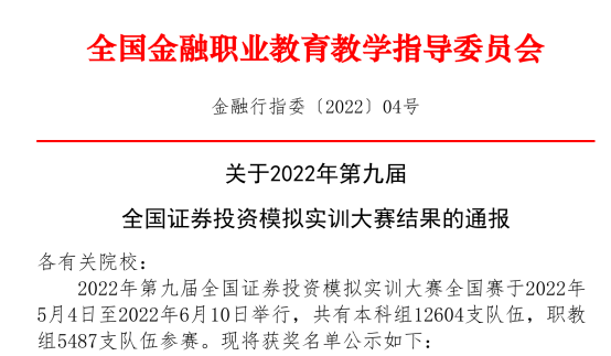 yl9193永利集团参加2022第九届全国证券投资模拟实训大赛喜获多项奖项