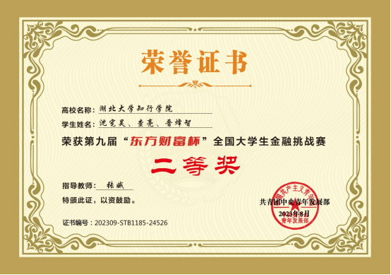 历经三个多月的超长赛期,我院金融学2022级沈宪昊团队获得国家决赛二等奖!