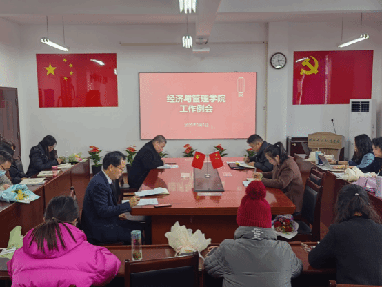 3月5日,经管学院在401会议室召开全院工作例会。会议由院长龚峰主持,学院领导班子成员及全体教职工参加了会议。