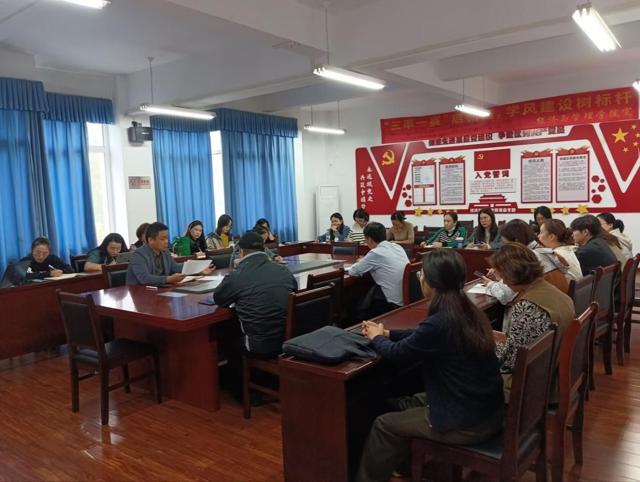 院长龚峰首先传达了学校关于专业布局调整的最新精神,强调学院将积极响应学校战略部署,坚持以“优化结构、强化特色”为导向,推动现有专业与数字经济、大数据管理等新兴领域深度融合。龚峰指出,数字化转型是高等教育改革的必然要求,鼓励教师主动参与跨学科培训,积极探索“新商科”课程体系建设。他表示,学院将全力支持教师适应新形势、新要求,确保教学科研工作平稳过渡、持续提升。
