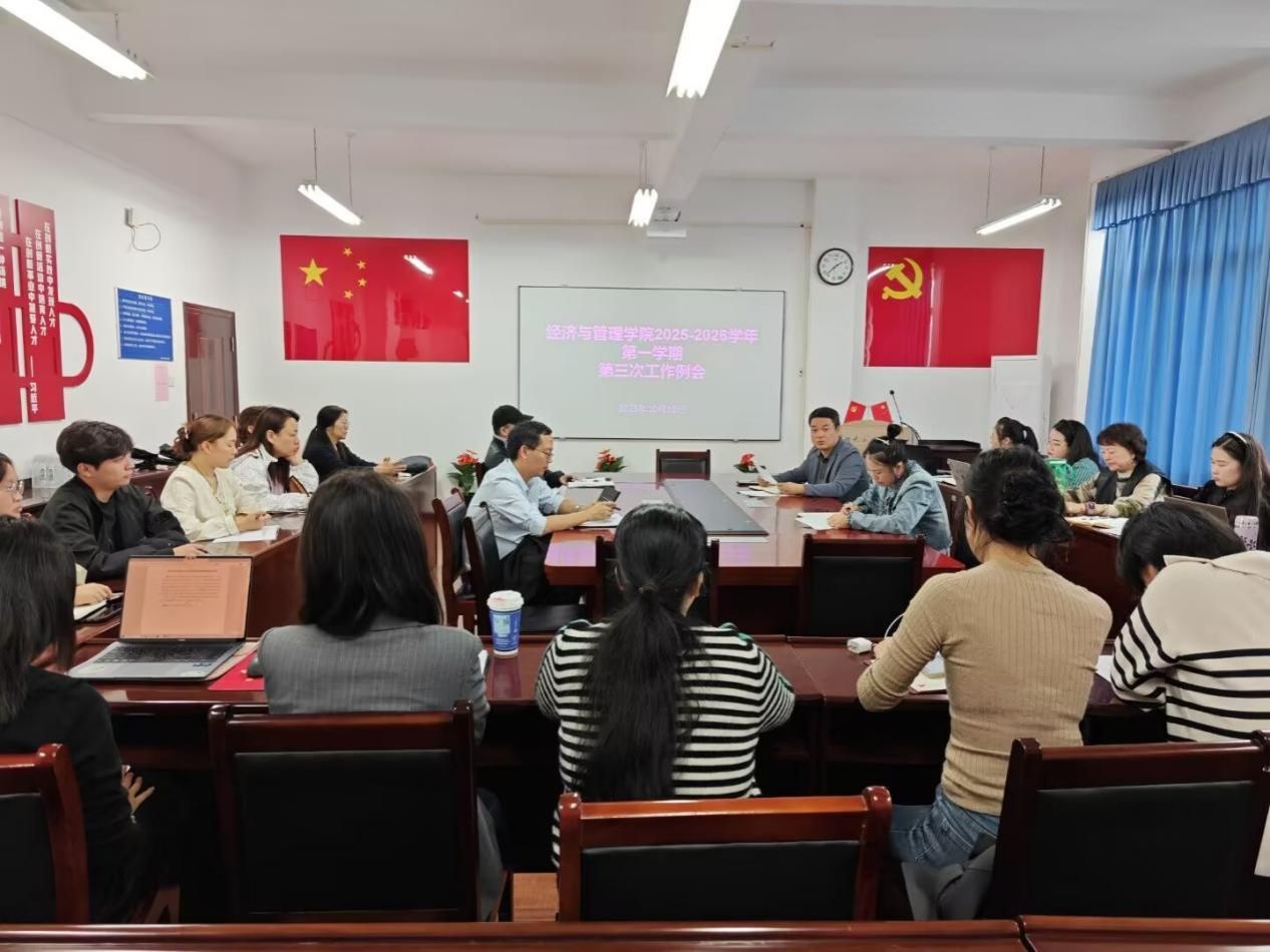 10月15日下午,yl9193永利集团在知远楼401会议室召开2025-2026学年第一学期第三次工作例会。会议由学院党总支书记汪小曼主持,院长龚峰、党总支副书记傅丽、副院长周贤出席会议,全体辅导员及专业课教师参加。会议围绕新学期重点工作部署、学科发展优化、学生管理及校园安全等方面展开深入研讨,为新学年学院事业高质量发展谋篇布局、凝聚共识。