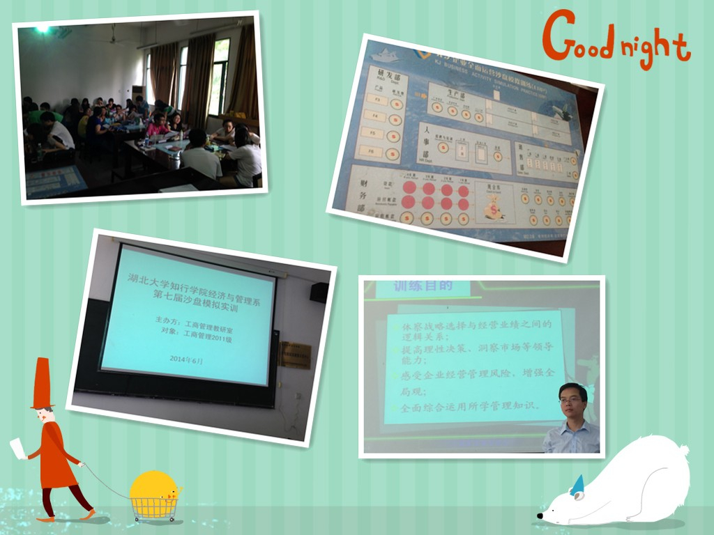 为了更好地提高学生的动手实践能力,全面提高学生的综合素质,经济与管理系工商管理教研室举办了为期一周的沙盘模拟实训,实训的对象为工商管理专业2011级本科全体学生,共计110余人,实训开始时间为2014年6月4日,我系与2008年举办首次沙盘模拟实训,至今,已经连续举办7次。