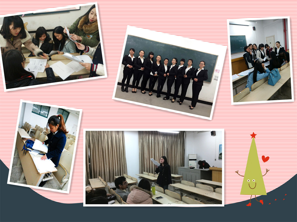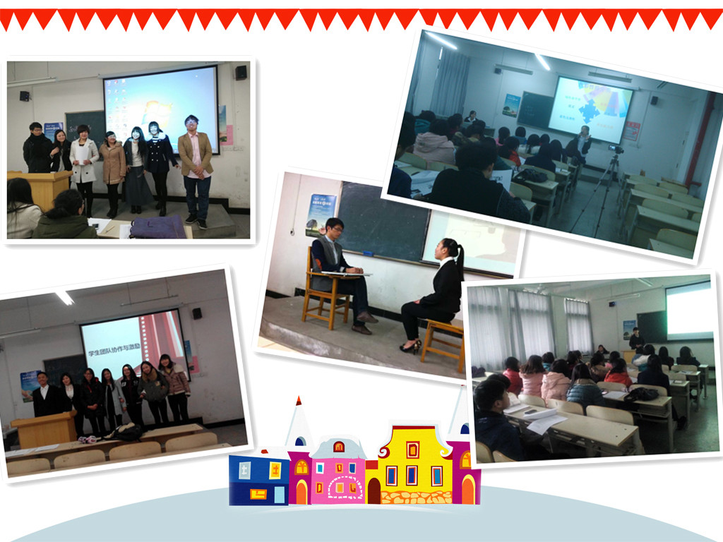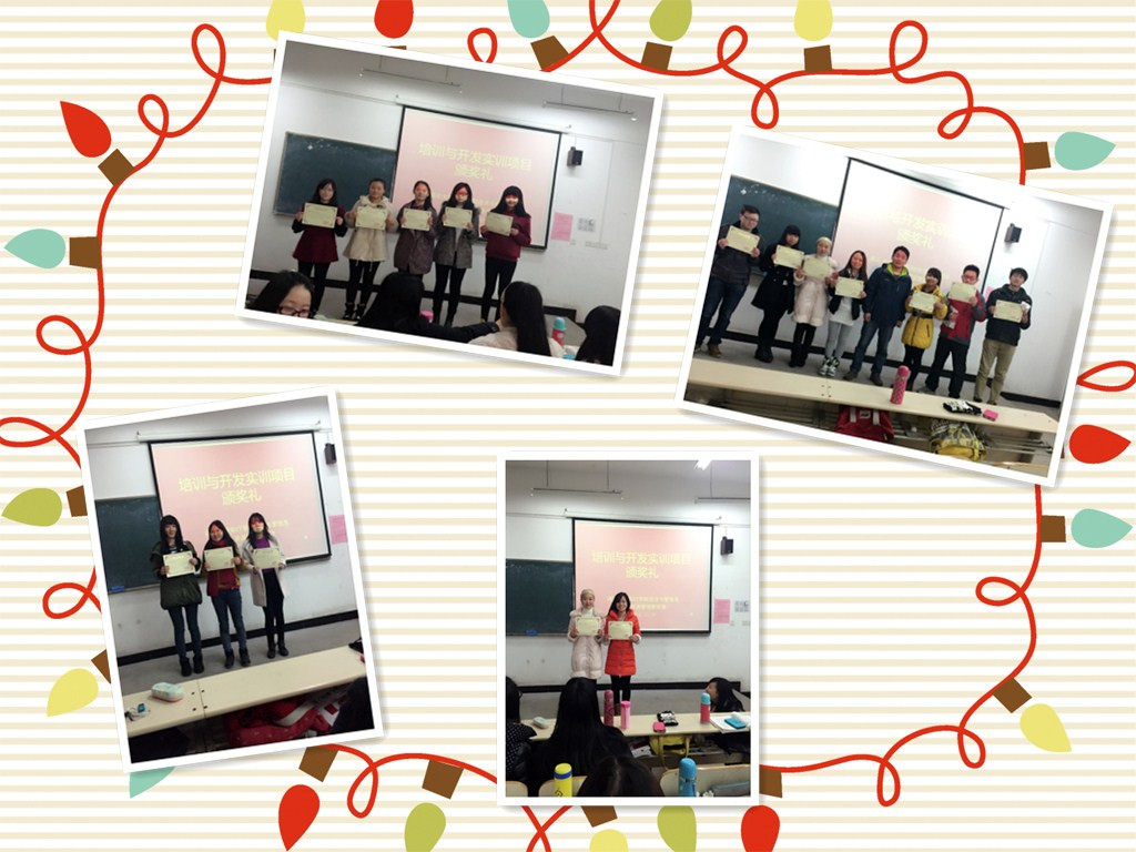 本次培训与开发实训项目以分组为形式分别在五个教室开展。12级人力资源管理专业学生分为10组模拟企业培训部,各完成一次培训任务流程。13级、14级人力资源管理专业学生分为5组作为受训者,共同完成本次培训与开发实训项目活动。每个教室培训两个课题,每个课题根据需求各不相同。分别是:面试技巧与流程、学生团队的协作激励、面试技巧培训、职场礼仪、如何有效利用新媒体、礼仪、如何成功找到靠谱的兼职、人际关系处理、兼职面试能力提升、性格色彩与生活。