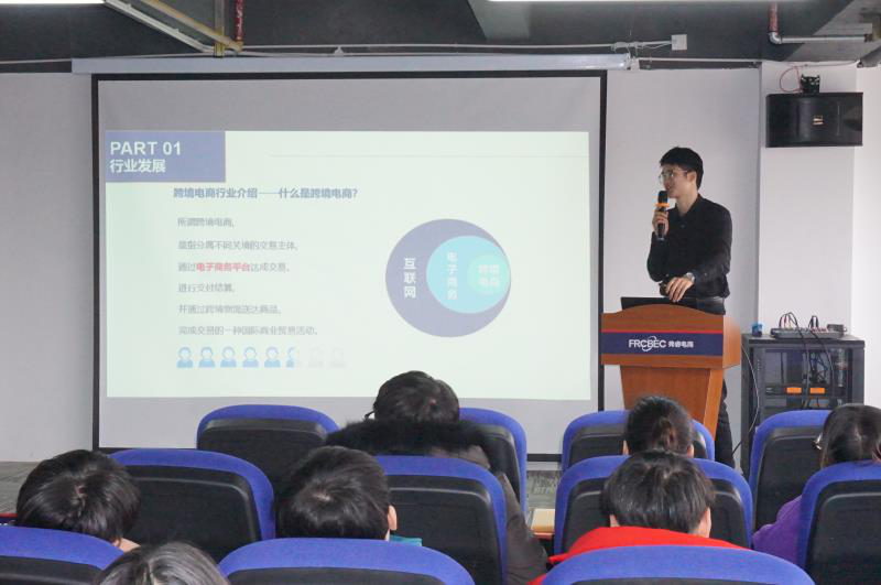 然后,张仁俊老师为大家带来了“跨境电商基础介绍”的主题讲座。通过他的讲述,同学们对弗睿跨境电子商务(武汉)有限公司的发展历程和业务模块有了一个整体的了解,对跨境电商行业的发展趋势和分类也有了一个清晰的认识。随后,张仁俊老师还带领老师和同学们参观了弗睿跨境电子商务(武汉)有限公司。