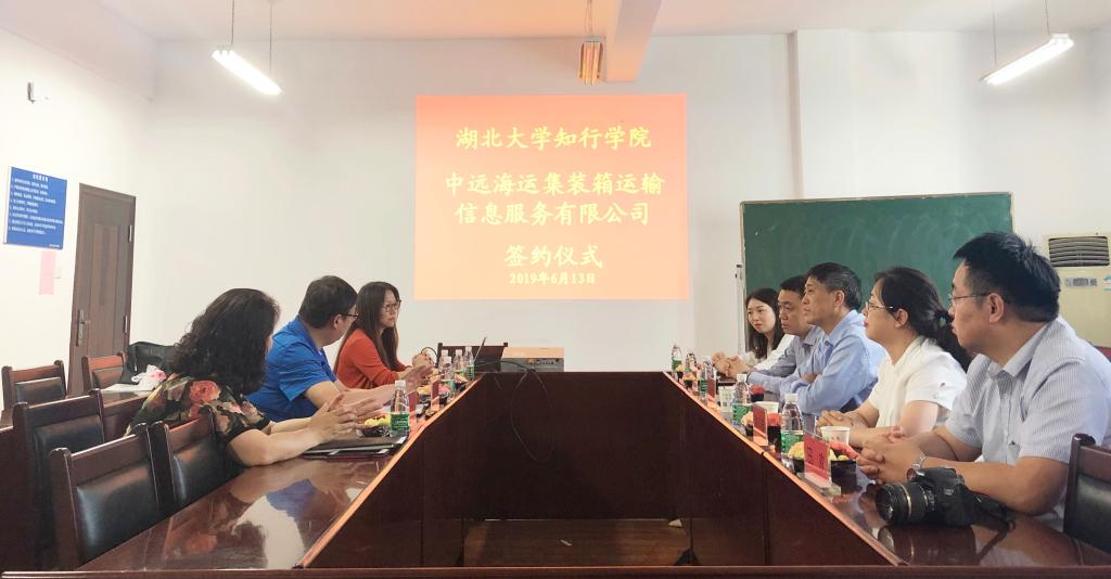 6月13日中午14:00我院在会议室401举行与中远海运集装箱运输信息服务有限公司的签约仪式。本次活动由我院刘容院长,龚峰副院长,杨丽梅老师,陈文锦老师与该公司相关负责人共同参与。