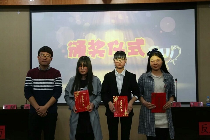 最后进入辩论赛的关键环节,由正反方四辩开始总结陈词,而双方的四辩口若悬河,言辞流利,最后以三分钟的陈词结束了本场辩论赛。当统分进行时,是现场互动环节,由四位现场观众向场上的辩手提问,而场上的辩手也是对答如流,紧接着,特邀的三位评委对整场辩论赛点评。“整场辩论赛还是很精彩的,尤其是正方的三辩,你的回答和提问都是相当专业的水准。非常不错。”交际与口才协会刘雄星说。