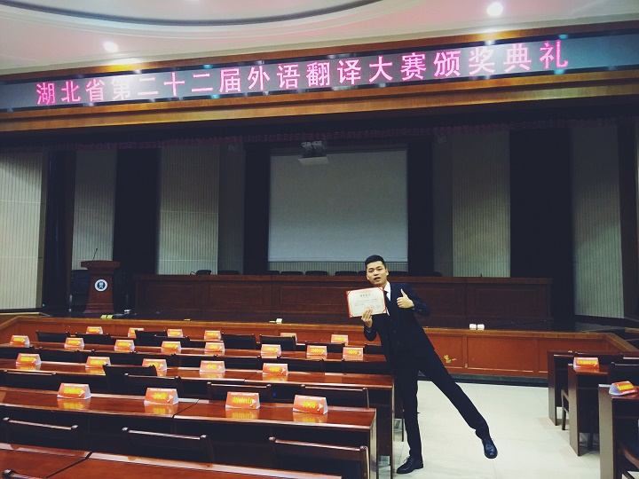 王旭东,来自经济与管理系国际经济与贸易专业1401B班,在2016年非英语专业英语口译比赛获得了湖北省第二名。