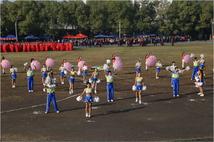 8时40分,随着庄严的国歌声响起,本届运动会正式开幕。步伐一致的国旗班学子向全院师生展现了抬首挺胸、昂扬向上的精神面貌。随后,七大系的学生代表方阵依次步行而过,各系方阵嘹亮的口号声飘扬在整个学院。其中经管系的学生代表方阵身着粉红色T恤衫,踏着整齐的步伐,呐喊着“知行天下,魅力经管”的口号从主席台下走过。经管系学子积极热情、奋勇争先的面貌赢得整个学院师生的掌声。紧接着,院艺术团表演了活力四射的啦啦操,全院选拔的师生带来了引人瞩目的裙摆舞和气势盛大的鼓阵。展现了我院师生积极参与体育活动、团结一心愿为学院争光的精神。