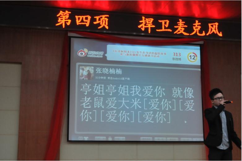 终于,12月4日晚六点半,我们迎来了经济与管理系“星光大道”K歌大赛决赛。五光十色的气球,精美的装饰无疑不体现着这次节目的精彩!激情四射的开场秀拉开了比赛的帷幕,激烈的比赛在期待中上演。第一轮的车轮战也逐渐的打响。《痴心绝对》、《忽然之间》等经典的歌曲萦绕在我们的脑间与心海。而马遇乐凭借着不俗的唱功获得了第一轮的绝对胜利!在下几轮的比赛中硝烟依旧弥漫!最终徐中亭,袁晓雨等4名选手进入了冠军的争夺战中,郑一曼凭借着优美的歌喉,打动了众位评委,获得了最后的胜利。最后郑一曼、马遇乐、袁晓雨分别获得第一名、第二名、第三名,并由他们各自的辅导员颁奖!