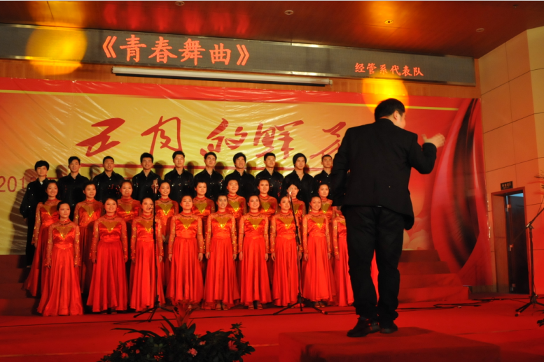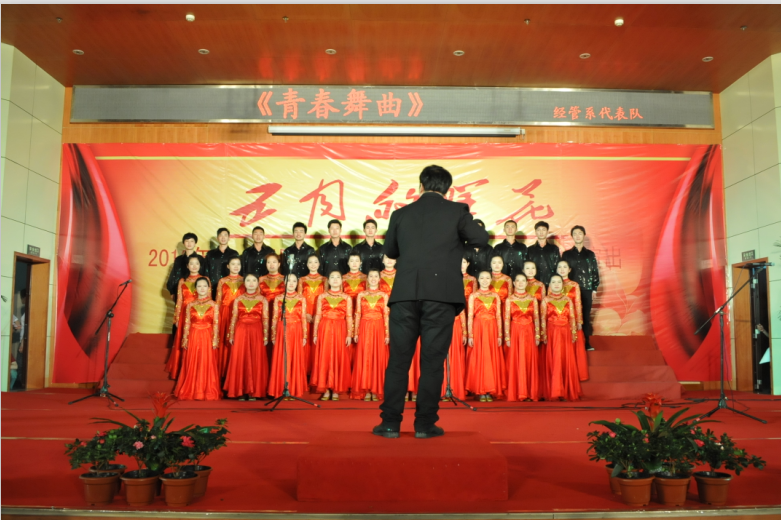 (本网讯)2013年5月4日晚上19:00,第七届“五月鲜花大合唱”在我院行政楼201隆重举行。此次活动嘉宾由众多老师、各个专业人士和 同学们组成。