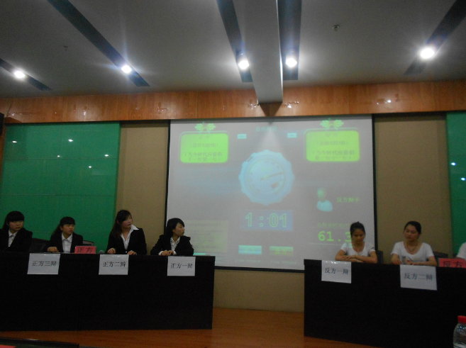 (本网讯)2013年5月15日晚七点,经济与管理系辩论赛决赛在行政楼202隆重举行,现场气氛热烈。