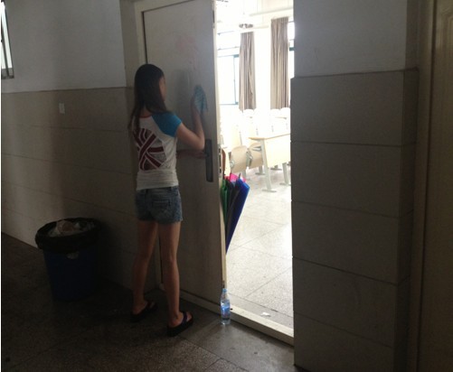 此次活动,主要是清洗多媒体幕布和控制台以及黑板,铲除墙上和教室门上的广告。另外,为了带动党员的积极性,我们将党小组成员分为若干个小组,指定一名高年级同学为组长,组长负责监督所负责楼层的卫生和测评,并对教室的清洁程度进行评比。对于表现优秀的小组进行表彰,对于表现较差的小组予以批评。