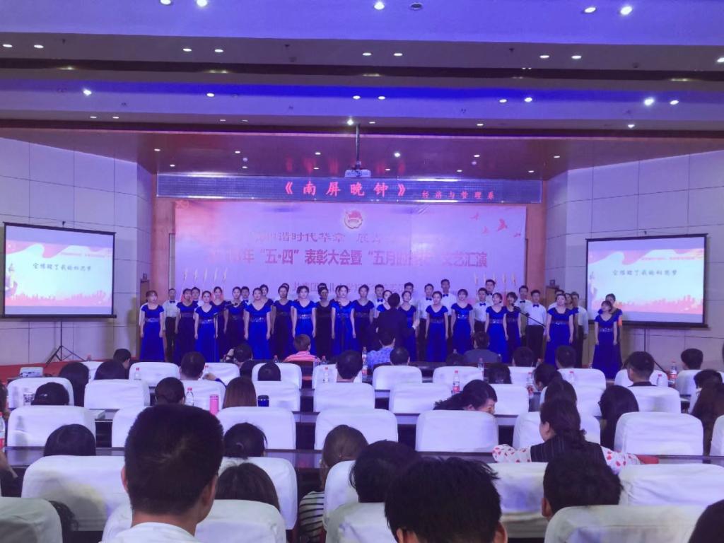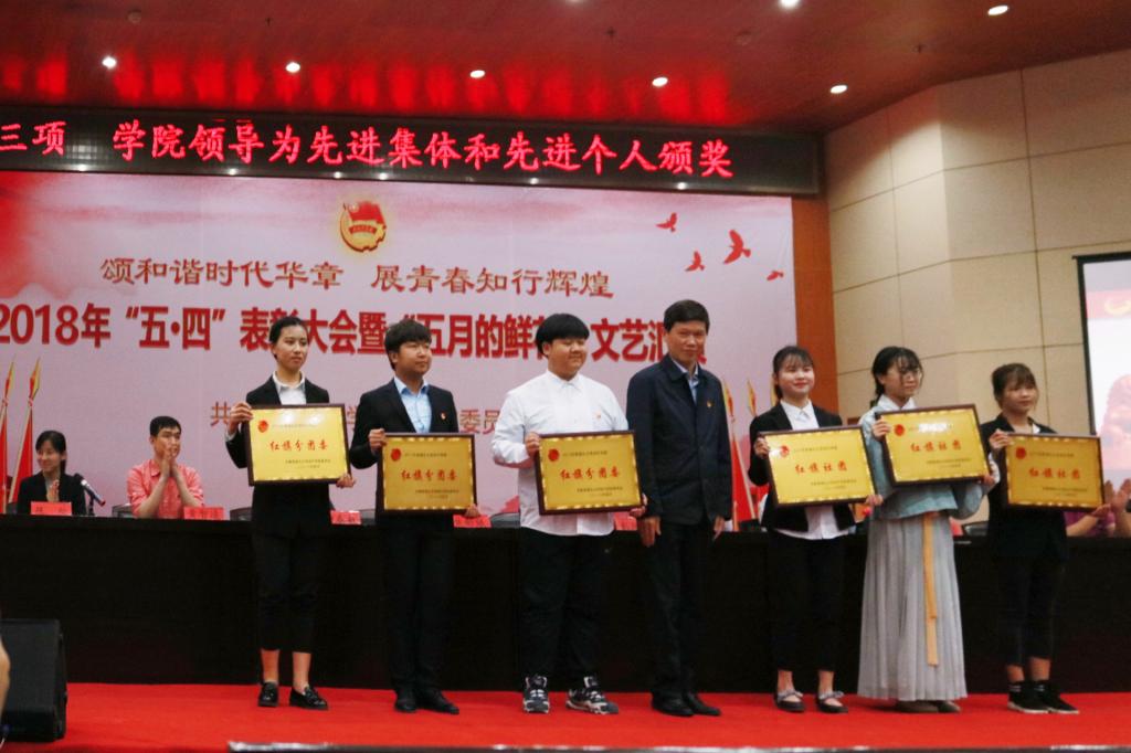 (本网讯/学生通讯员 陈龙)颂和谐时代华章,展青春知行辉煌,4月27日下午在我院学术报告厅201举行了2018“五四”表彰暨“五月鲜花”文艺汇演。学院党委书记彭德忠、院长卜诗桢及各副院长、各系部主要领导和老师出席了本次活动。