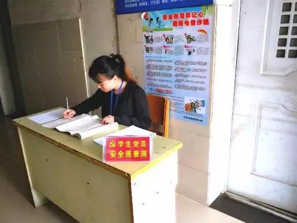 (值班党员履行自己的职责为宿舍楼栋安全文明值岗)