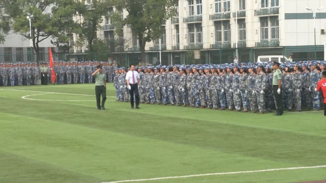 (本网讯 青年传媒中心 卢崇恺)2018年9月30日,我院在足球场举行阅兵仪式。首先标兵入场迎过“军训团”团旗。院长卜诗桢在军训教官的陪同下依次对各方队进行检阅,并向同学们致以亲切问候。