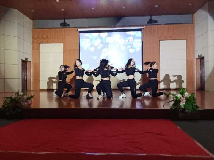 当精灵拉上夜幕,绿色的荧光浮现,视觉的冲击带来惊艳的舞台效果。接下来就经管系分团委学生会文艺部舞蹈队为我们带来的《霸王龙联盟》!整齐的步调,动感的舞姿。跳的不是一段舞,而是一种心情!