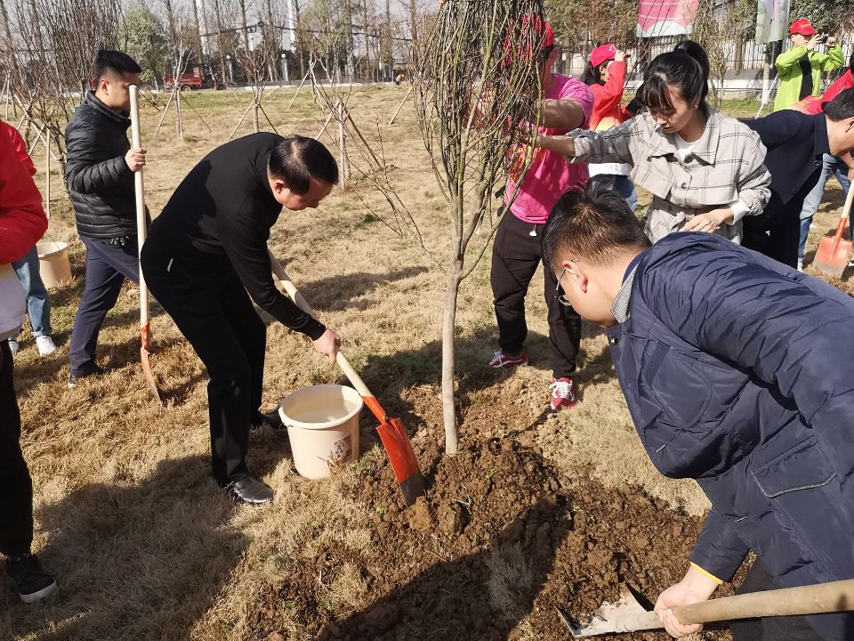 和风送暖,风华正茂,又到春光明媚种树时。第41个植树节来临了,为促进校园绿化,增强广大师生的生态和环保意识,3月12日上午, 学院领导和各系志愿者们在体育馆后方草坪进行了植树活动。领导、老师们热情高涨,撸起袖子,挥锹铲土,扶苗填坑,踏土夯苗,齐心协力栽下一棵棵树苗,植树现场一片忙碌,一派火热。志愿者们衣着小红粉,头戴小红帽,朝气满满的和老师们一起参与了植树。