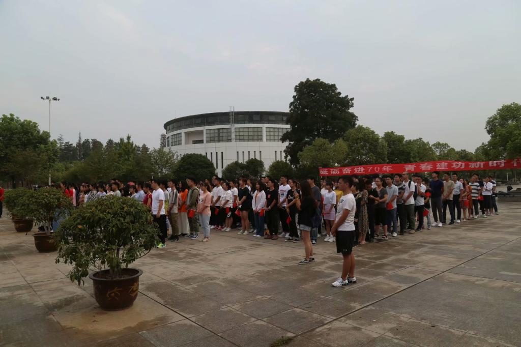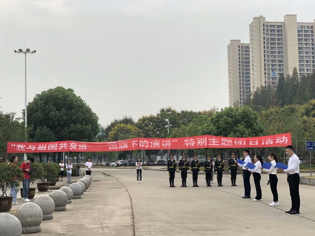 新学期新气象, 为庆祝新中国成立70周年,大力唱响礼赞新中国奋进新时代的青春主旋律,校团委于早晨7:00在学校正门口升旗台开展“砥砺奋进70年,青春建功新时代”—“我与祖国共奋进——国旗下的演讲”特别主题团日活动。