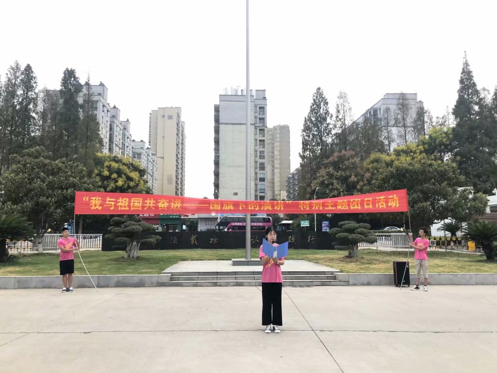 晨风微习,朗读声高,升旗仪式第一项,升国旗,奏国歌,护旗手们步步严肃,出旗升旗,晨风吹拂下五星红旗飘扬在知行的正门前。活动第二项,经管学院学生代表进行《中国,我的中国》诗朗读,感情饱满,感人肺腑。活动第三项,分团委学生会学生书记彭鑫怡国旗下的讲话,让我们感受到了爱国热情,了解到了爱国初心。活动第四项,《我和我的祖国》合唱,我和我的祖国,一刻也不能分割,我最亲爱的祖国,我永远紧贴着你的心窝。