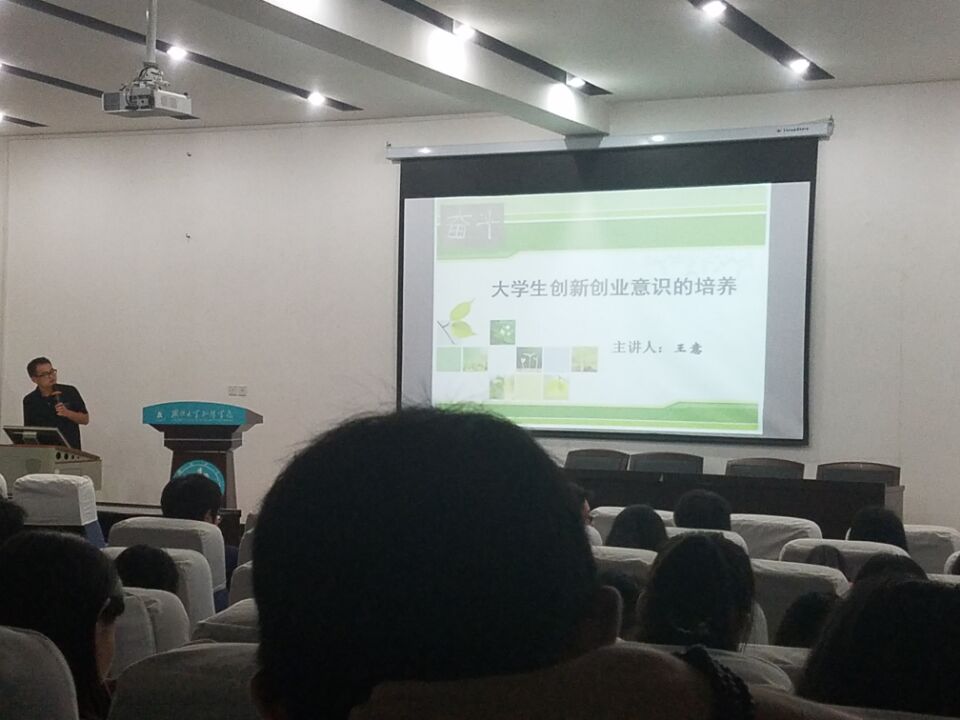 2017年6月12晚7点,在知远楼106报告厅,“自主创业明星”王意为经管系学生做创新创业意识培养的讲座。