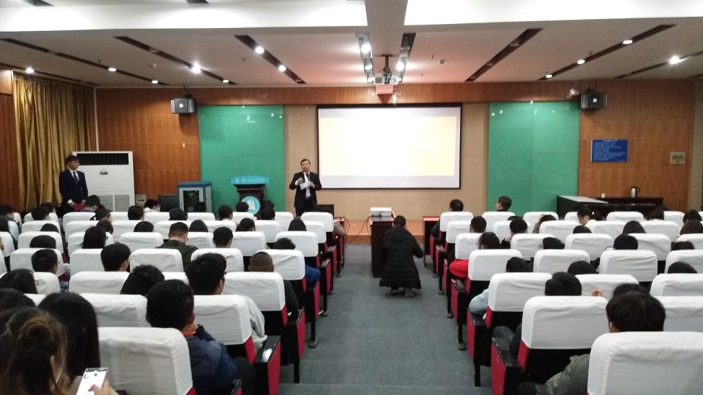 签约结束后,舒怀强总经理为我系学子做了企业内部创业讲座。他首先用海归学习对买保险无所谓态度的例子来给大家讲解保险的含义,然后从社会实践、国家政策等方面介绍保险是一个朝阳专业,最后系统全面的介绍了太平人寿保险公司。活动最后,以舒怀强总经理与我系学子的提问互动完满的结束了此次讲座。