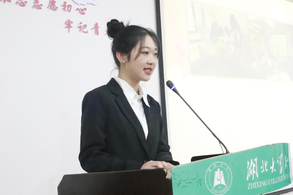 我院优秀志愿者夏雅雯同学以“予志愿之期,致青春之言”为主题,将我院2018年度的志愿活动项目进行展示。在这一年中我院组织了27个团支部,对接服务17个社区;参加保护河湖志愿项目,对塔子湖进行调研保护;开展了院部特色品牌“我的地球故事”自然知识科普讲座活动。2018年,志愿者们共进行了30余次志愿活动,服务工时累计高达200个小时。更值得一提的是,我院志愿者翁俊鹏,赵昊南因志愿服务活动表现优异,被选为武汉世界军人运动会志愿者。