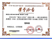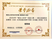 2018年“湖北工匠杯”技能大赛——湖北省建筑信息模型(BIM)应用技能大赛,省级,冠军奖。