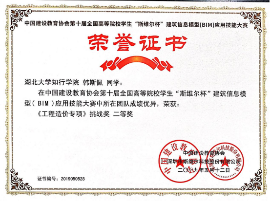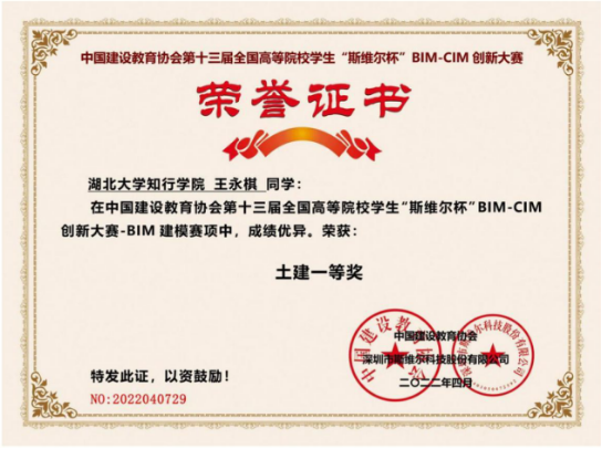 以学科竞赛为依托,形成持续稳定的实践教学模式。学生在湖北省“工匠杯”比赛中获得冠军奖,也多次在国家级BIM-CIM创新大赛中连续获得二等奖、三等奖。