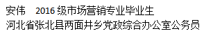 安伟 | 2020届市场营销 | 河北省张北县两面井乡党政综合办公室,公务员 |