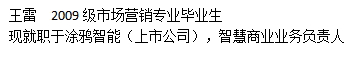 王雷 | 2013届市场营销 | 杭州涂鸦信息技术有限公司,智慧商业业务负责人 |
