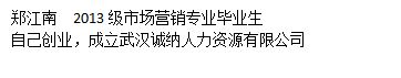 郑江南 | 2017届市场营销 | 自己创业,华烨文化有限公司 |