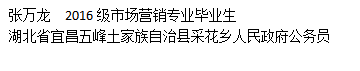 张万龙 | 2020届市场营销 | 湖北省宜昌五峰土家族自治县采花乡人民政府,公务员 |