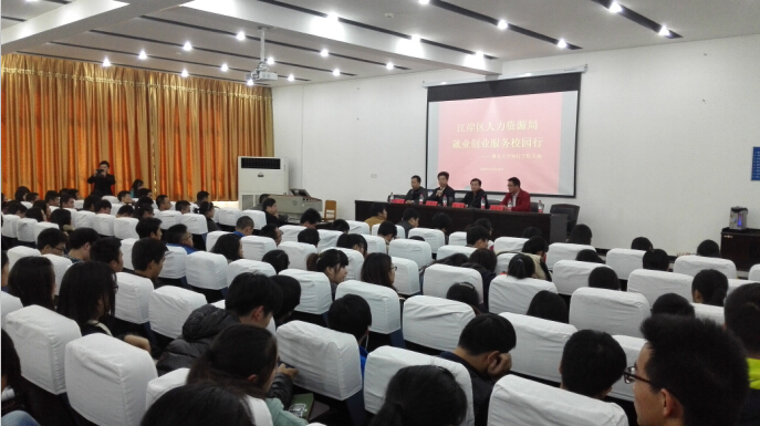 2014年11月18日下午两点,由江岸区人力资源局组织的“就业创业服务校园行”专场讲座在学术交流中心弘艺厅顺利举行。