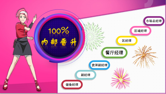 --最后8-12个月,继续学习利润管理、团队管理、TQM等6门管理课程,由此荣升为独当一面、带领百人团队、掌管千万营业额的餐厅经理,成为百胜的核心人物。