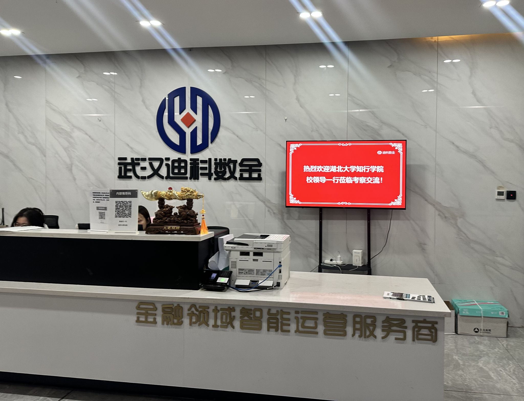 安徽迪科数金科技有限公司武汉分公司负责人对龚峰院长一行的到访表示热烈欢迎,并详细介绍了公司的发展历程、业务范围、企业文化以及在金融科技领域的创新成果与人才战略。该负责人对我院毕业生的专业素养和实践能力给予了高度评价,并表达了与学院建立长期稳定合作关系的强烈意愿,希望在学生实习实训、就业招聘、课程共建、技术研发等方面开展深度合作。