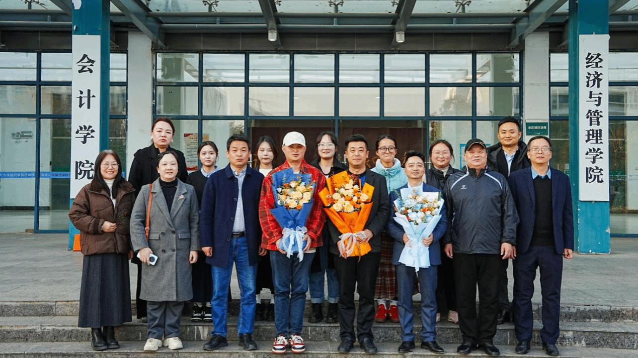 分享期间,由学生代表李文丽、刘淑娴、明鑫鸿分别向三位校友献花合影,定格下知识传承、情感联结的温馨瞬间。