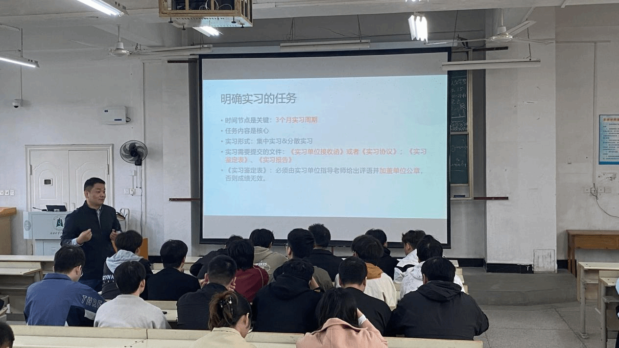 讲座最后,龚峰院长鼓励同学们珍惜实习机会,将课堂所学转化为实际工作能力,同时牢记安全准则,以饱满的热情和严谨的态度投入到实习中。参会学生纷纷表示,此次动员会干货满满,不仅明确了实习的各项要求,也增强了自身的安全防范意识,为即将到来的实习生活做好了充分准备。