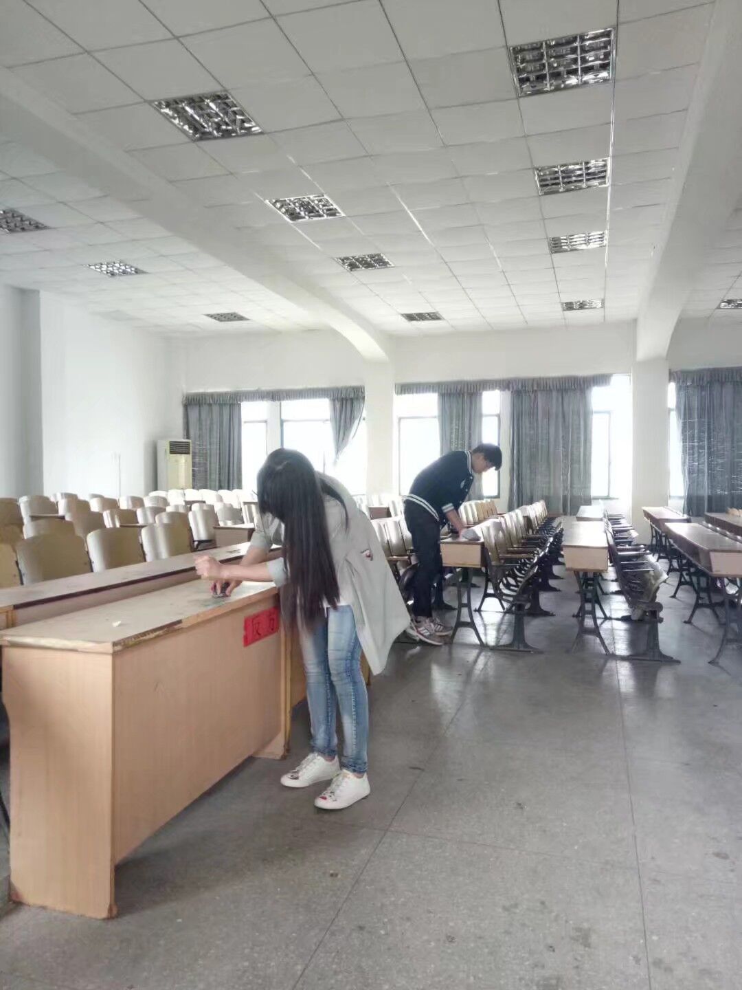 学生党员、入党积极分子对知真楼二三楼205、206、207、211、213、214、215、216、218、301、302、303、304、305教室及教室外墙壁上的小广告进行清除。在清除的过程中,同学们分工明确,并运用前期所学的清除办法,将各种各样的“顽固”广告消灭。