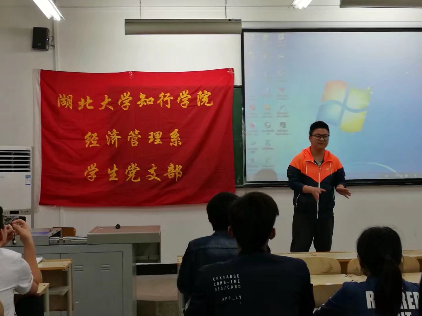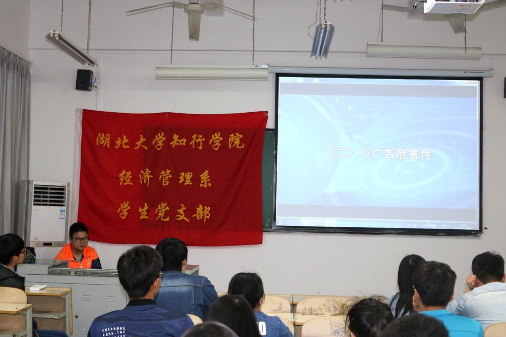 (本网讯学生通讯员刘美玲)4月11日下午6:30,我系党支部总负责,在三教216教室召开校园小广告的清除宣讲活动,大一、大二班级生活委员参与本次活动。本次活动由分团委学生会副主席刘姗主持,学工处党员示范员江运博讲解。