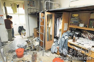 2006年10月8日上午9时,中国地质大学(武汉)北校区男生宿舍第22栋304室起火,起火原因是台灯忘了关,电线短路引发火灾。